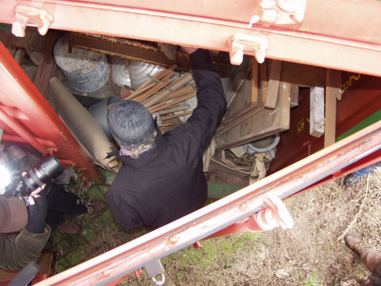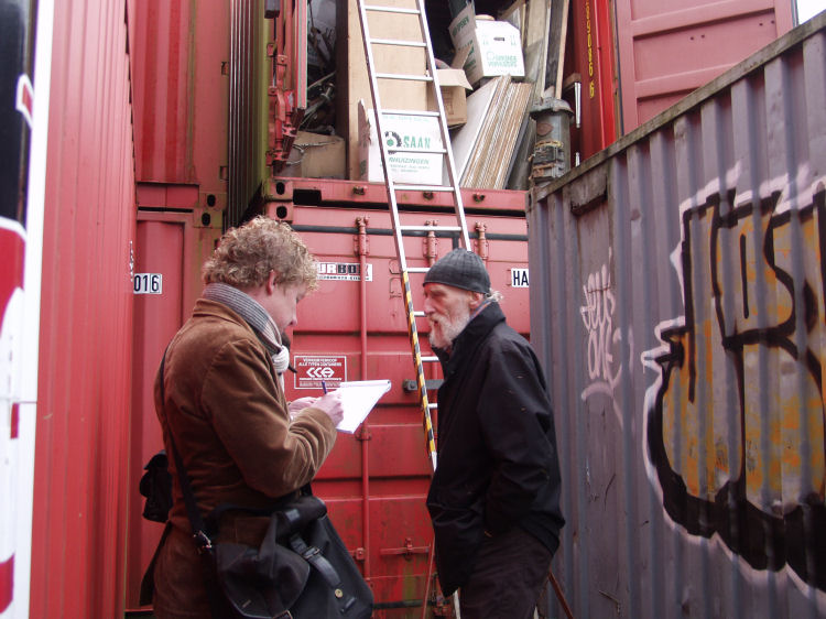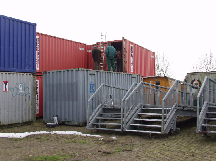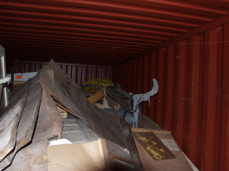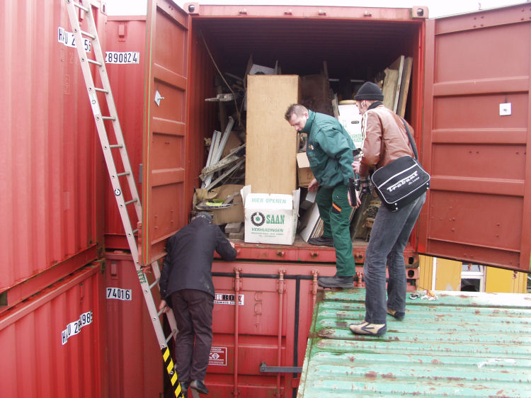 At January the 10th, 2006, there was, on request of Bert Niemeyer, journalist for the Haagse Post, in presence of Waldo Bien and Jacobus Kloppenburg, a visit to the containers. The following photo documentation gives an impression of the mishandling and disastrous storage conditions of the artworks, mixed with loads of debris from the contractors.